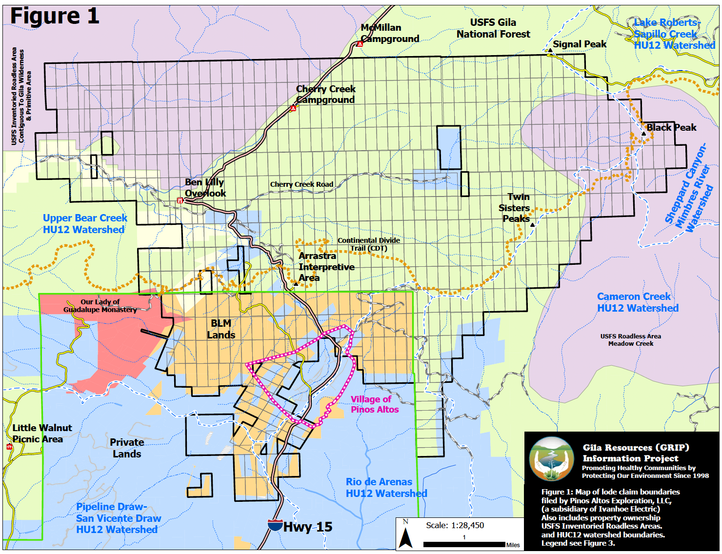 In 2024, the company’s subsidiary, Pinos Altos Exploration, staked 642 lode claims covering 13,264 acres of Forest Service, Bureau of Land Management (BLM) and private land encircling the community of Pinos Altos, located 8 miles north of Silver City and considered the “gateway” to the Gila National Forest, Gila Cliff Dwellings, and Gila Wilderness.